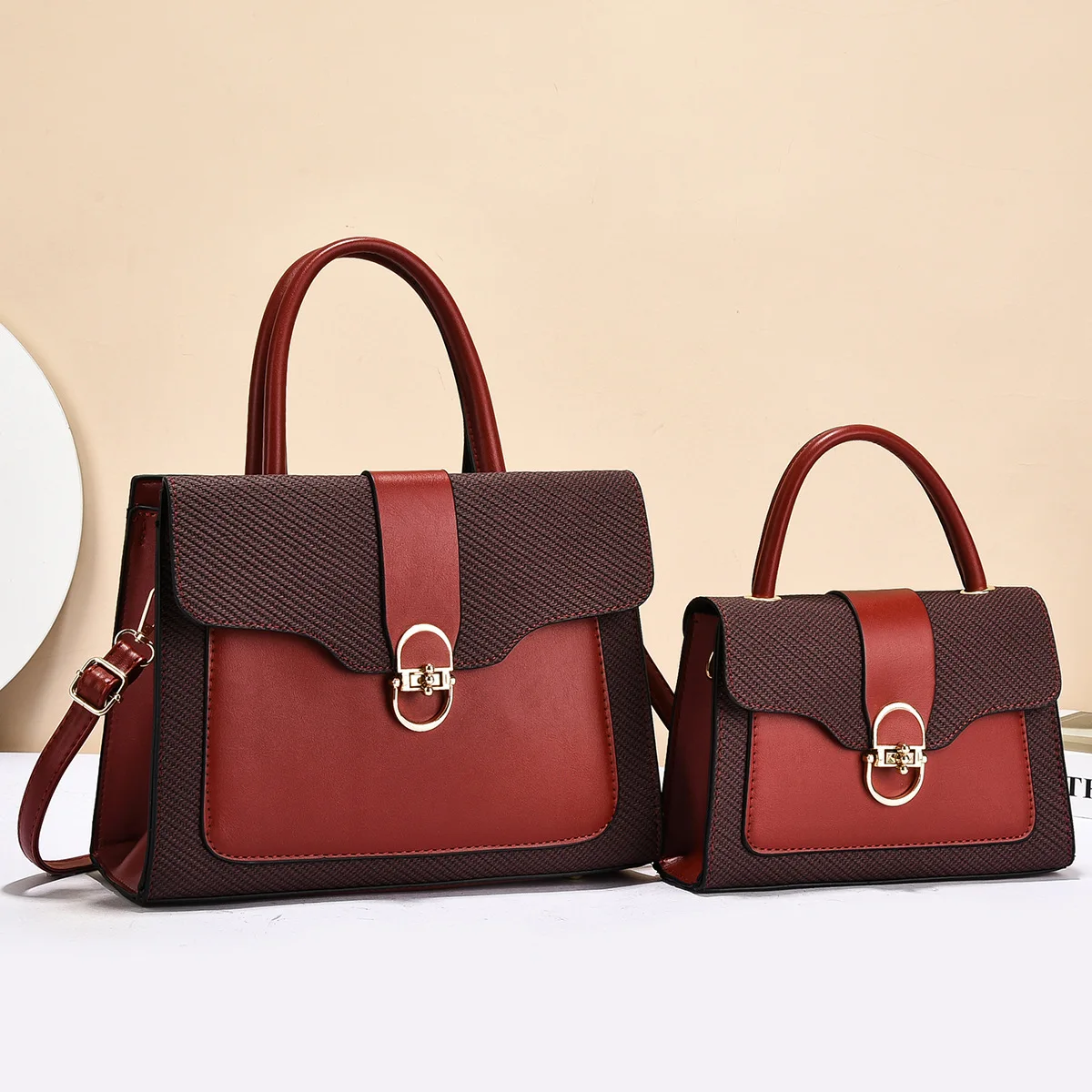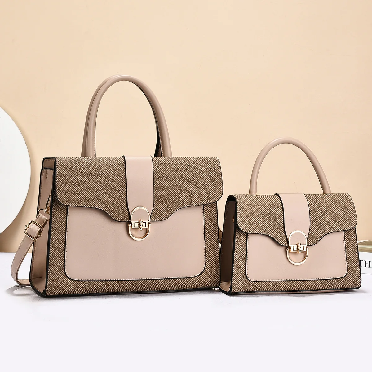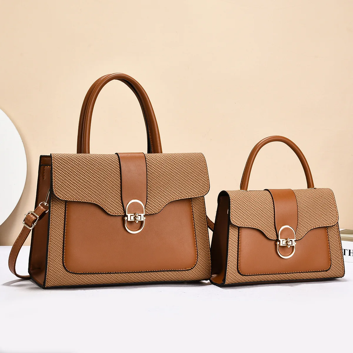 Fashionable Women's Commuter Handbag 2025 New Style Mother-Child Handbag PU Material Large Capacity Tote Bag with Contrast Color