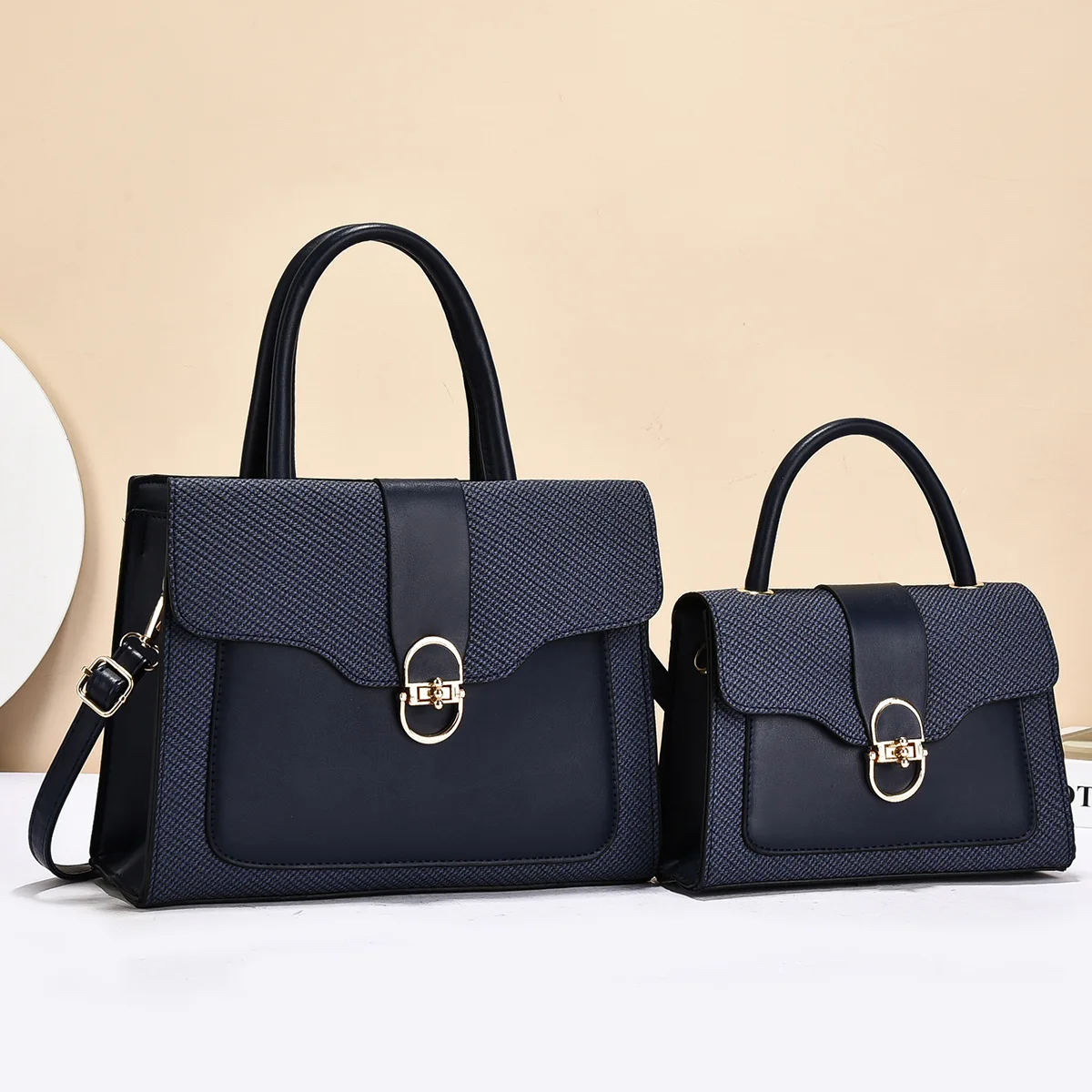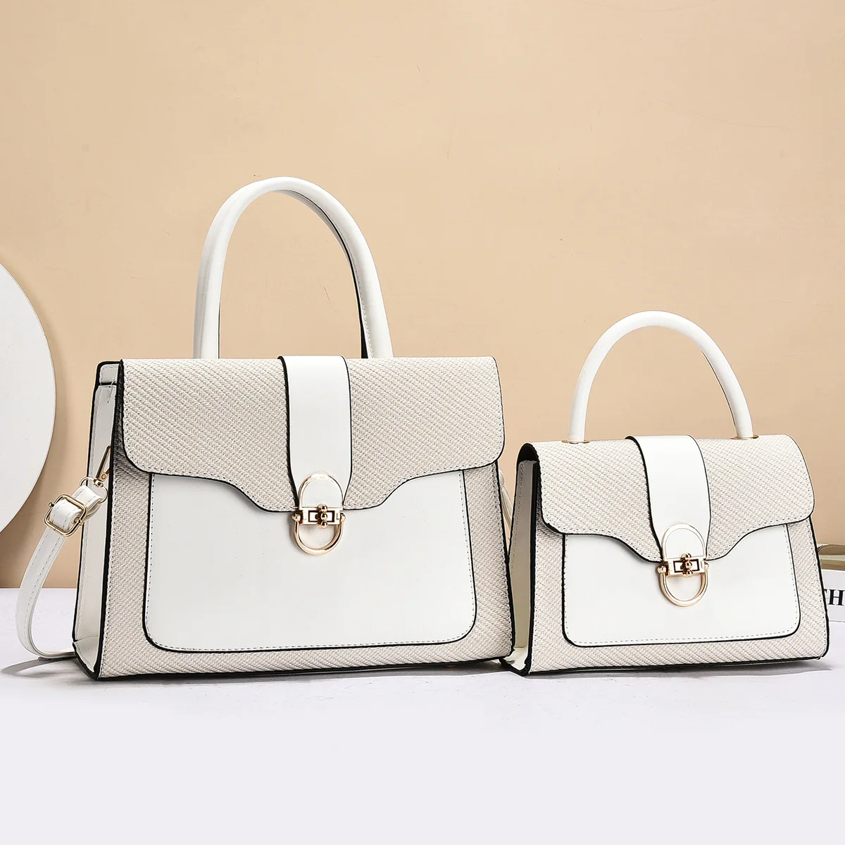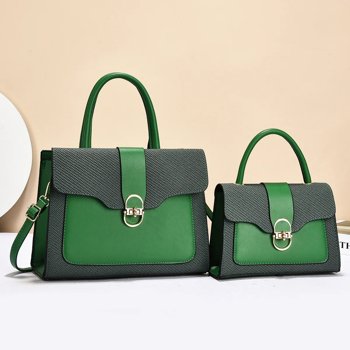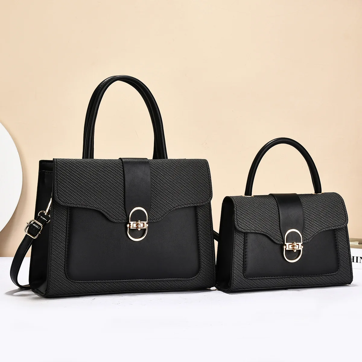 Fashionable Women's Commuter Handbag 2025 New Style Mother-Child Handbag PU Material Large Capacity Tote Bag with Contrast Color